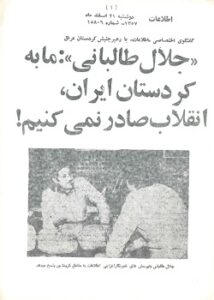 جلال طالبانی: ما بە کردستان ایران، انقلاب صادر نمی کنیم! جلال طالبانی: ما بە کردستان ایران، انقلاب صادر نمی کنیم! گفتگوی اختصاصی (اطلاعات) با رهبر جنبش کردستان عراق اطلاعات شمارە ١٥٨٠٦ دوشنبە ٢١ اسفند ماە ١٣٥٧ دانلود: جلال طالبانی 2021-12-20 Hewalname Kteb